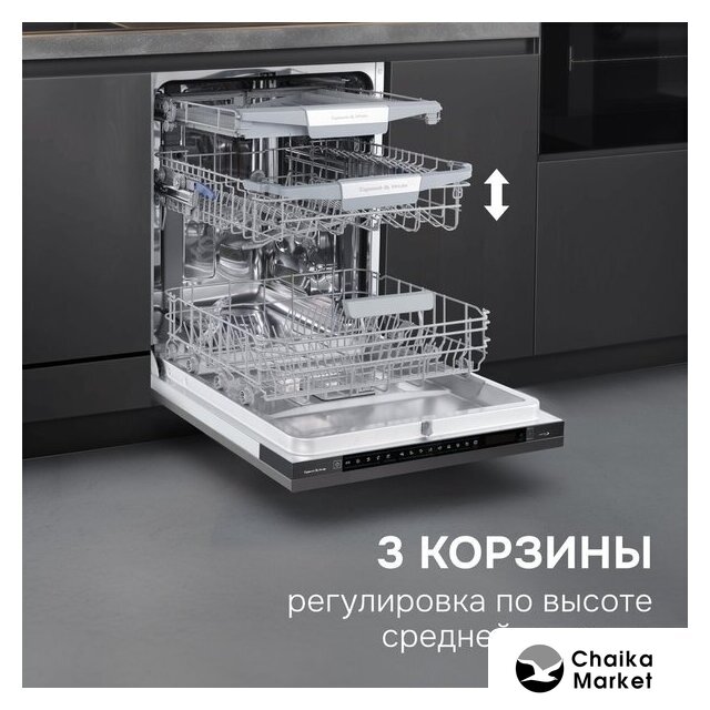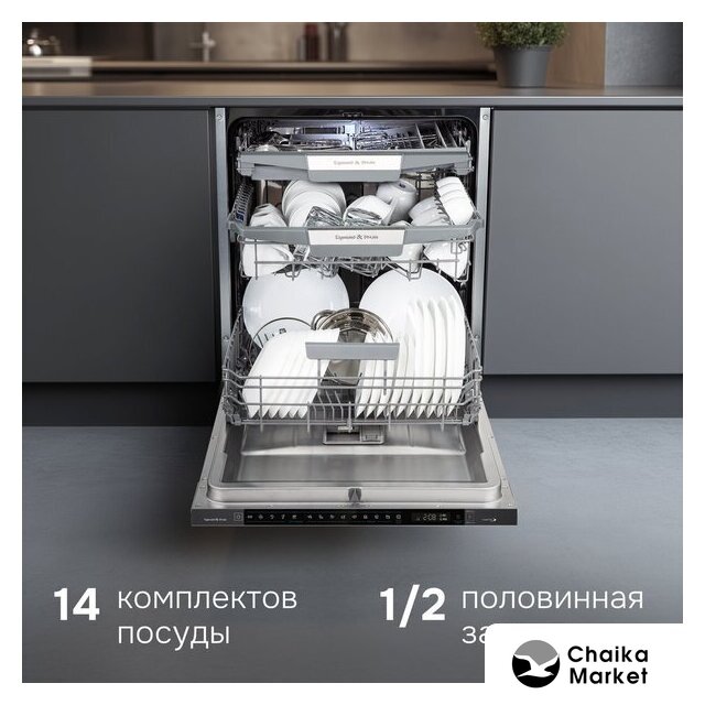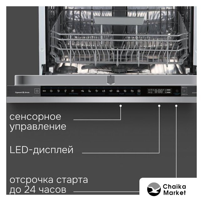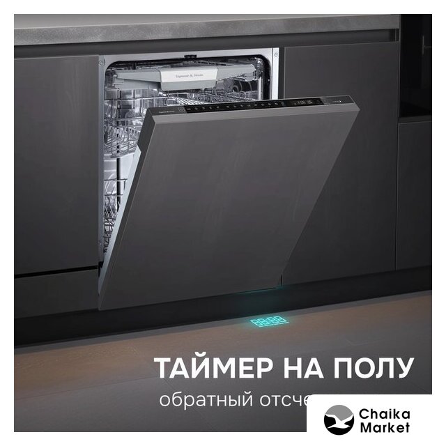 загрузка на 14 комплектов посуды, сенсорное управление, 9 программ, 59.8x56x82 см, нержавеющая сталь цвет, сушка: стандартная (конденсация)/с открыванием дверцы, индикация на полу: проекция дисплея