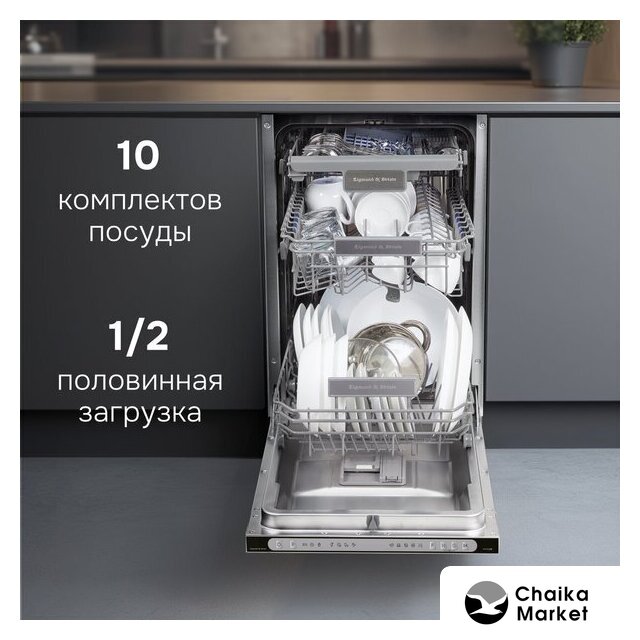 загрузка на 12 комплектов посуды, электронное управление, 4 программы, нержавеющая сталь цвет, сушка: стандартная (конденсация), индикация на полу: луч
