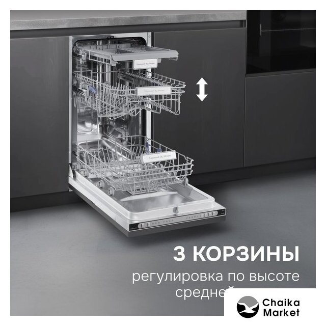 Особенности верхней корзины | регулировка положения по высоте, держатели для бокалов |