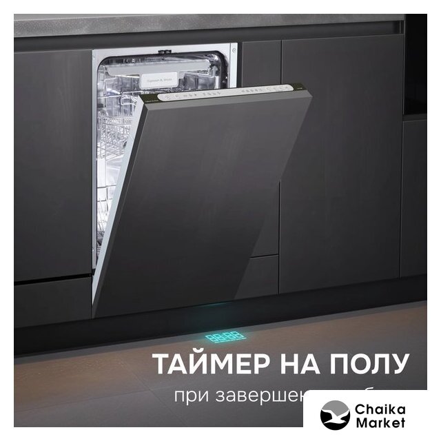 загрузка на 12 комплектов посуды, электронное управление, 5 программ, 59.8x55x82 см, черный цвет, сушка: стандартная (конденсация), индикация на полу: луч