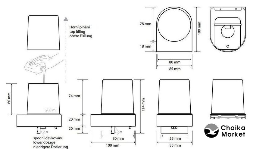 дозатор для жидкого мыла, настенная установка, металл, объем: 150 мл