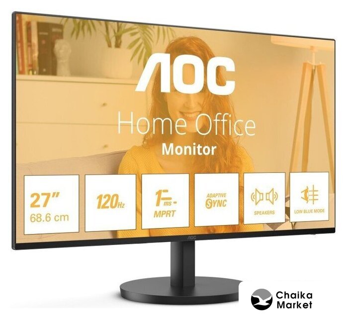 27", 16:9, 1920x1080, IPS, 120 Гц, AMD FreeSync, динамики, интерфейсы HDMI+D-Sub (VGA)