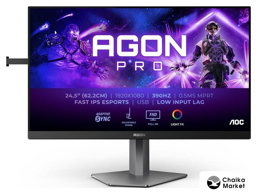 24.5", 16:9, 1920x1080, IPS, 390 Гц, AMD FreeSync Premium, динамики, интерфейсы HDMI+DisplayPort, регулировка высоты, портретный режим