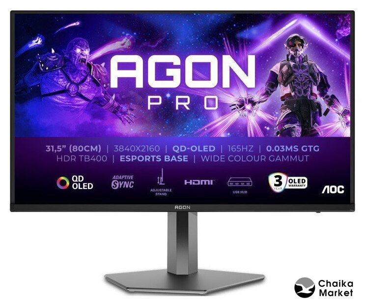 31.5", 16:9, 3840x2160, OLED, 240 Гц, AMD FreeSync Premium Pro, динамики, интерфейсы HDMI+DisplayPort+USB Type-C, регулировка высоты, портретный режим