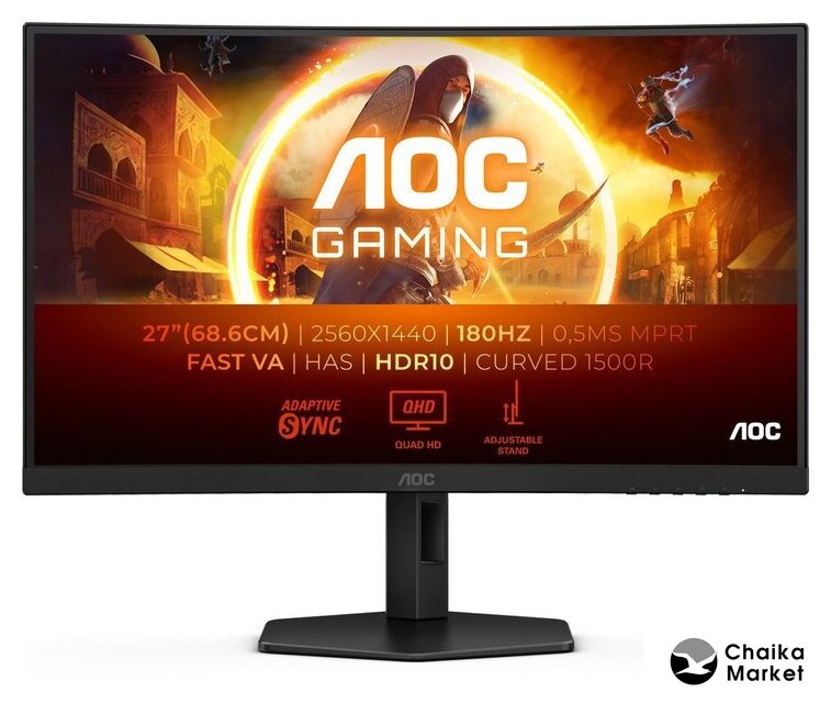 27", 16:9, 1920x1080, VA, изогнутый (1500R), 180 Гц, AMD FreeSync/VESA Adaptive-Sync, динамики, интерфейсы HDMI+DisplayPort