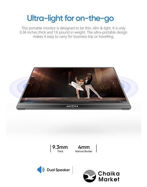 15.6", 16:9, 1920x1080, IPS, 60 Гц, динамики, интерфейсы USB Type-C+mini HDMI