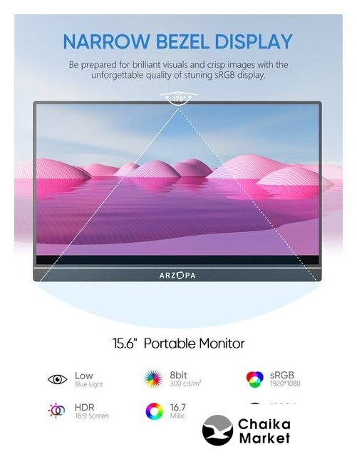 15.6", 16:9, 1920x1080, IPS, 60 Гц, интерфейсы USB Type-C, портретный режим