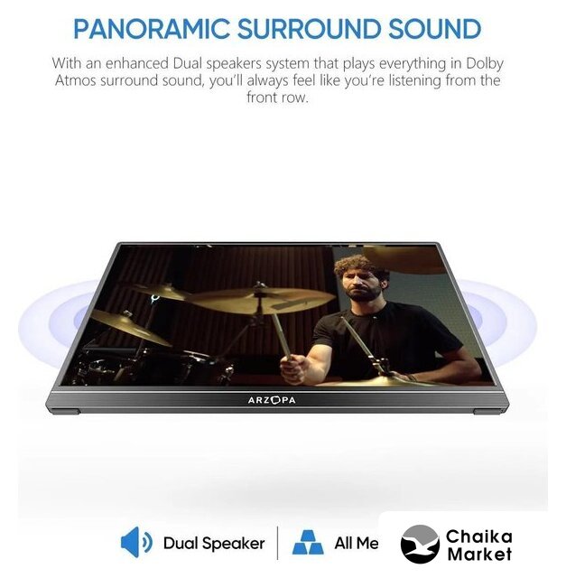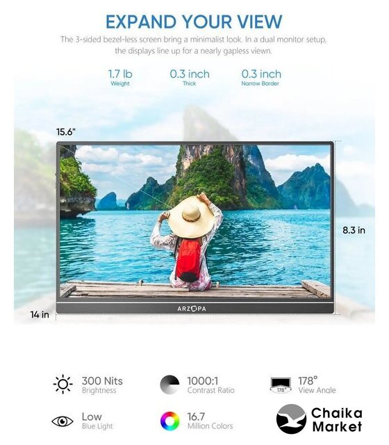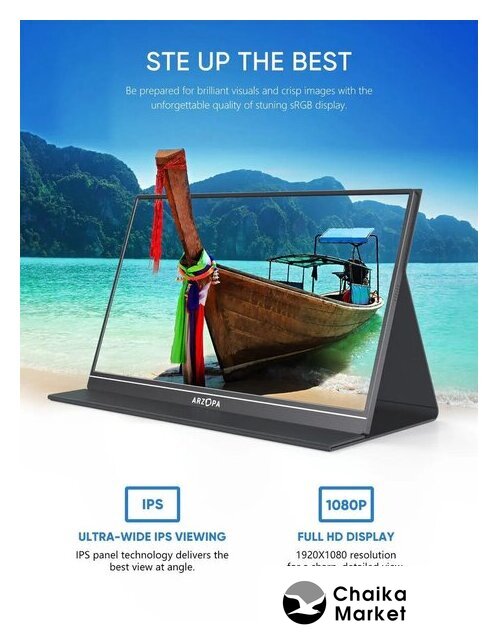 15.6", 16:9, 1920x1080, IPS, 60 Гц, динамики, интерфейсы USB Type-C+mini HDMI, портретный режим