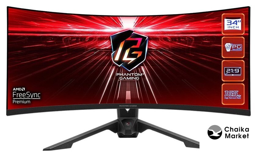 34", 21:9, 3440x1440, VA, изогнутый (1500R), 180 Гц, AMD FreeSync Premium, динамики, интерфейсы HDMI+DisplayPort+USB Type-A, регулировка высоты