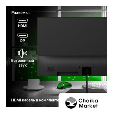 27", 1920x1080, 16:9, IPS, 144 Гц, глубина 8 бит, яркость 250 нит, динамики, HDMI+DisplayPort+D-Sub (VGA)