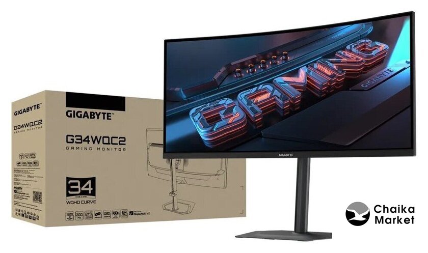 34", 21:9, 3440x1440, VA, изогнутый (1500R), 165 Гц, AMD FreeSync Premium, динамики, интерфейсы HDMI+DisplayPort, регулировка высоты