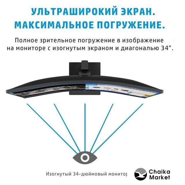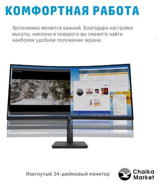 34", 21:9, 3440x1440, VA, изогнутый (1800R), 100 Гц, AMD FreeSync, динамики, интерфейсы HDMI+DisplayPort, регулировка высоты