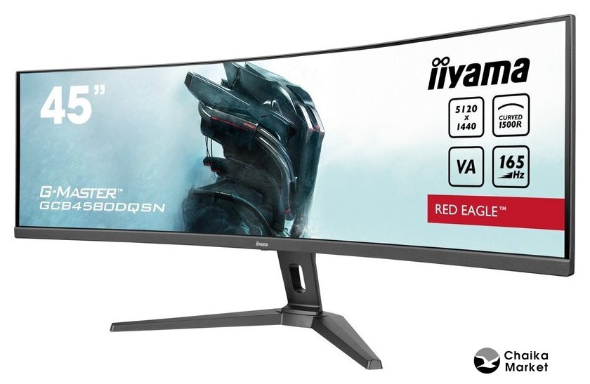 44.5", 32:9, 5120x1440, VA, изогнутый (1500R), 165 Гц, VESA Adaptive-Sync, динамики, интерфейсы HDMI+DisplayPort+USB Type-C, регулировка высоты