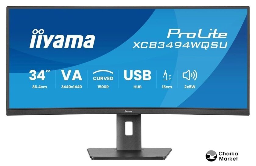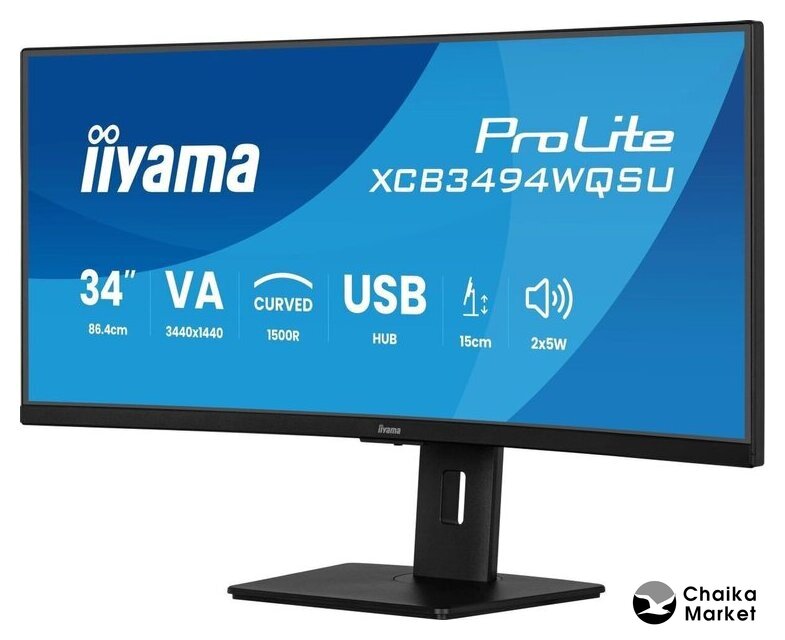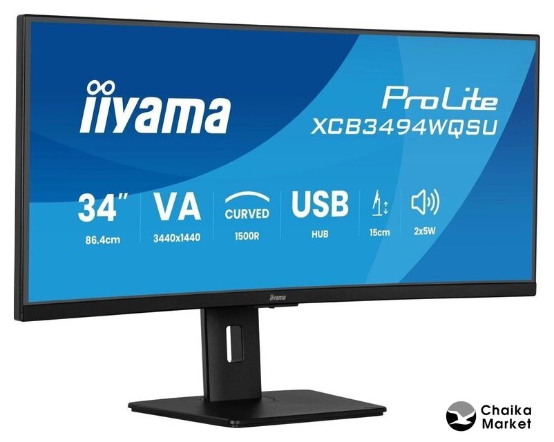 34", 21:9, 3440x1440, VA, изогнутый (1500R), 120 Гц, VESA Adaptive-Sync, динамики, интерфейсы HDMI+DisplayPort+USB Type-C, регулировка высоты