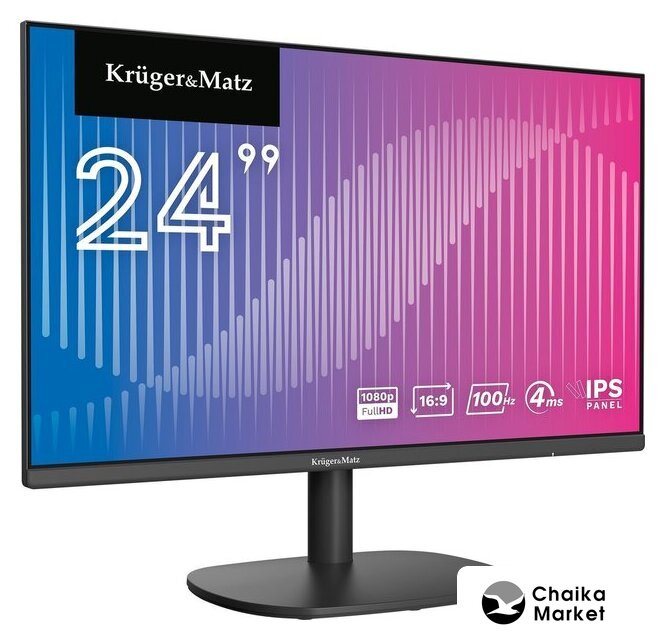 24", 1920x1080, 16:9, IPS, 100 Гц, яркость 250 нит, HDMI+D-Sub (VGA)