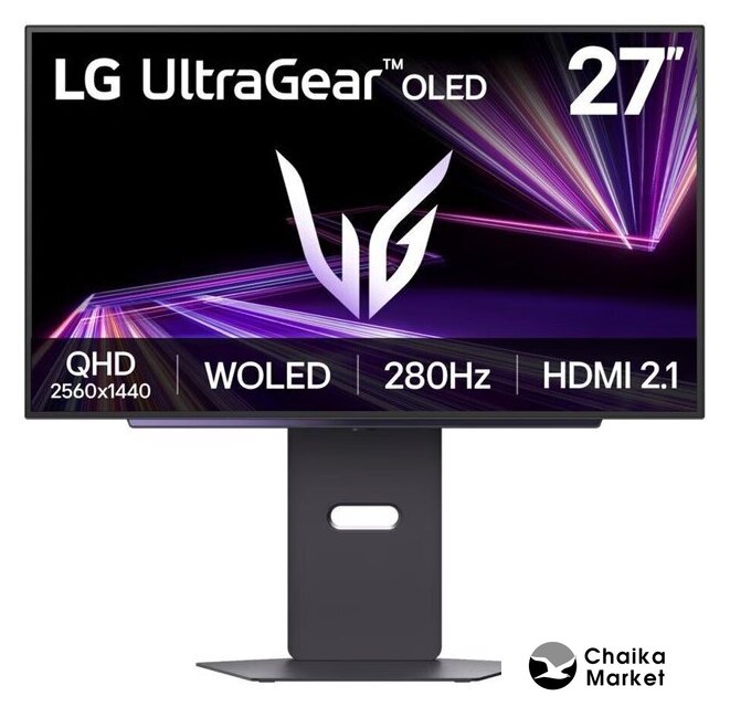 26.5", 2560x1440, 16:9, OLED, 280 Гц, c квантовыми точками, глубина 10 бит, яркость 250 нит, HDR10, HDMI+DisplayPort+USB Type-C, питание по USB-C до 15 Вт, регулировка высоты, портретный режим
