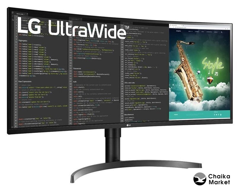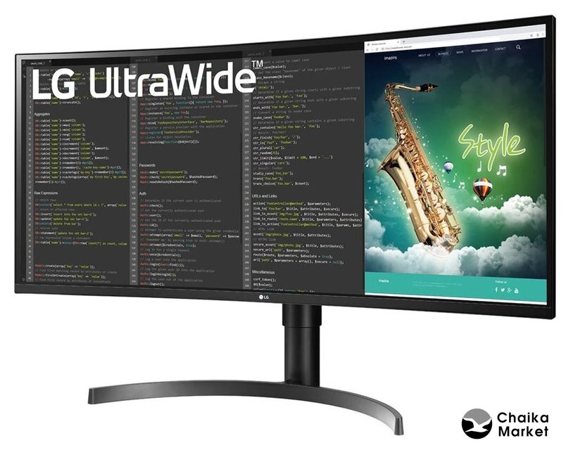 35", 3440x1440, 21:9, изогнутый, кривизна 1800R, VA, 100 Гц, яркость 300 нит, HDR10, динамики, HDMI+DisplayPort+USB Type-C, питание по USB-C до 90 Вт, регулировка высоты