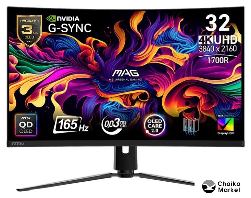 31.5", 16:9, 3840x2160, OLED, подсветка с квантовыми точками, 165 Гц, AMD FreeSync Premium Pro, интерфейсы HDMI+DisplayPort+USB Type-C, регулировка высоты, портретный режим
