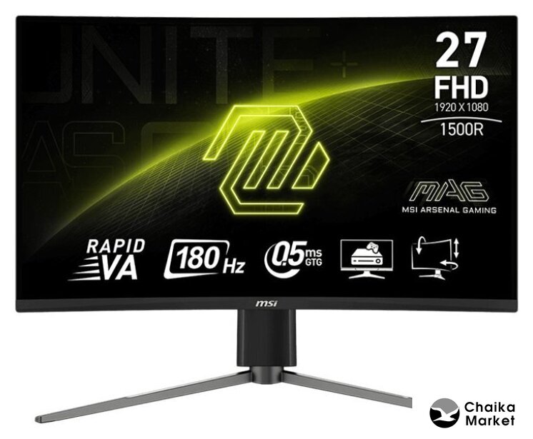 27", 16:9, 1920x1080, VA, изогнутый (1500R), 165 Гц, AMD FreeSync Premium, динамики, интерфейсы HDMI+DisplayPort, регулировка высоты