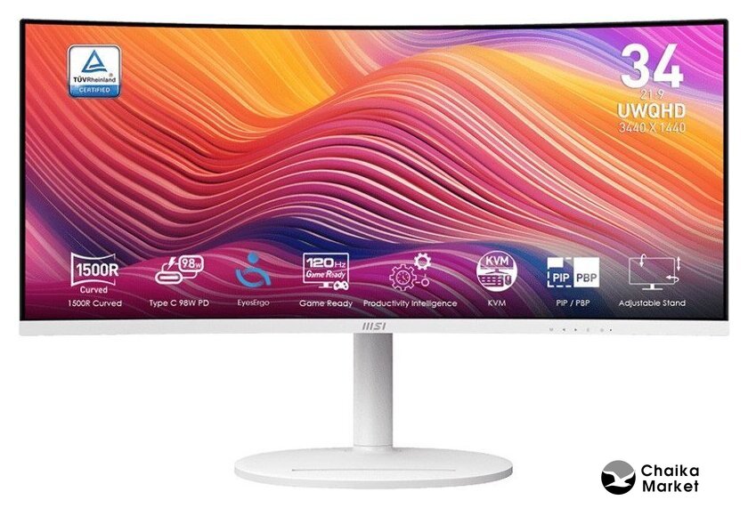 34", 21:9, 3440x1440, VA, изогнутый (1500R), 180 Гц, AMD FreeSync Premium, динамики, регулировка высоты