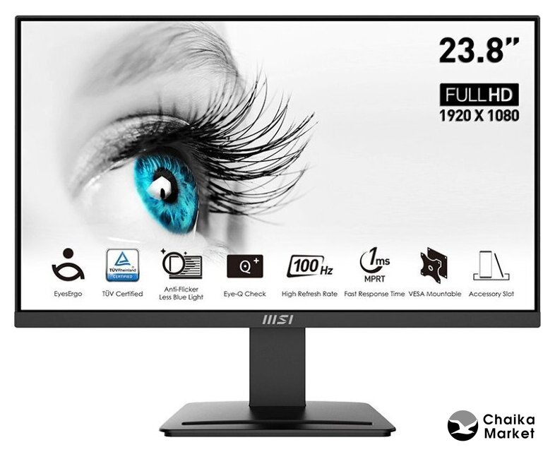 23.8", 16:9, 1920x1080, IPS, 75 Гц, AMD FreeSync, динамики, интерфейсы HDMI+DisplayPort+D-Sub (VGA)