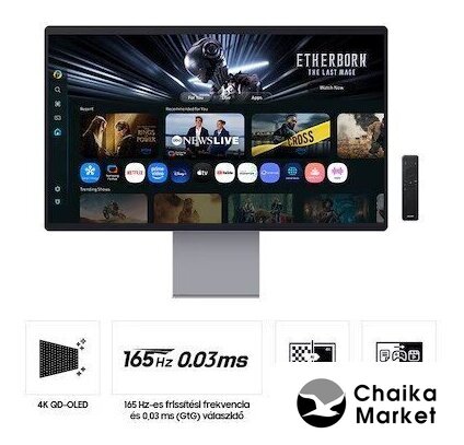 32", 3840x2160, 16:9, OLED, 240 Гц, c квантовыми точками, глубина 10 бит, HDR10/Dolby Vision, HDMI+DisplayPort+USB Type-C, питание по USB-C до 90 Вт, регулировка высоты