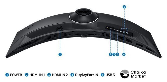 49", 32:9, 5120x1440, VA, изогнутый (1000R), 120 Гц, динамики, интерфейсы HDMI+DisplayPort+USB Type-C, регулировка высоты