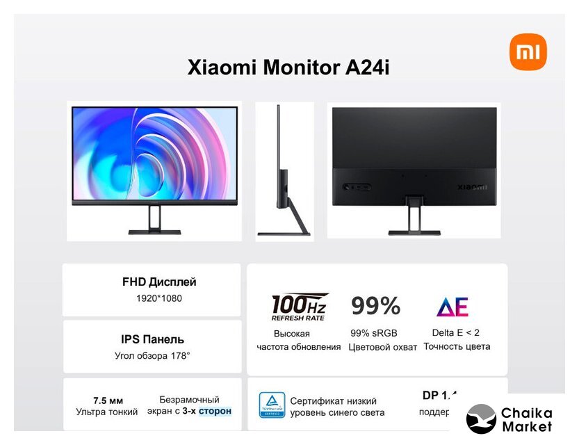23.8", 16:9, 1920x1080, IPS, 100 Гц, VESA Adaptive-Sync/AMD FreeSync Premium, интерфейсы HDMI