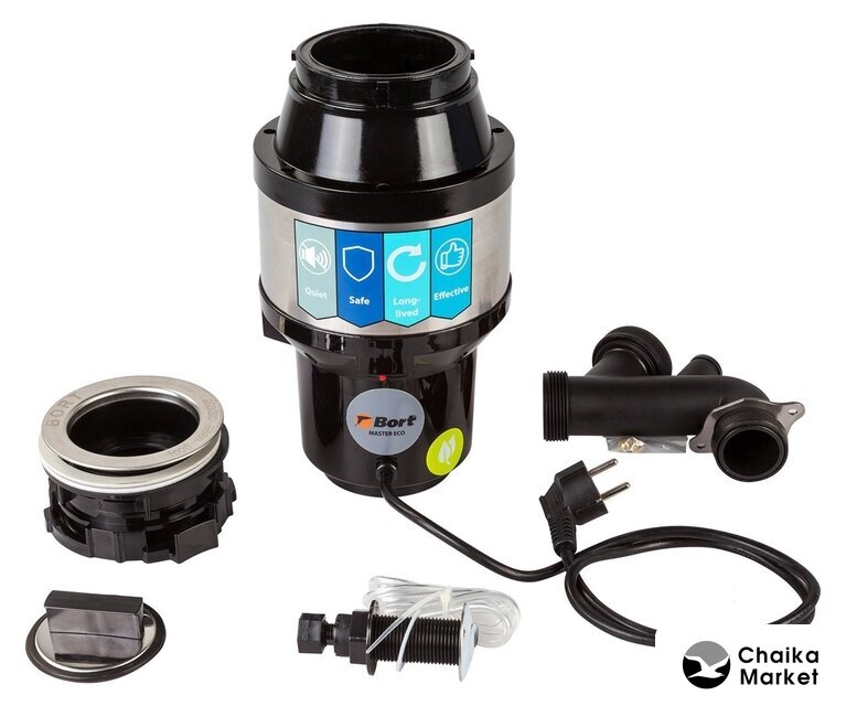 электрический, синхронный двигатель, 380 Вт, 4200 об/мин, управление: пневмокнопка, камера 0.9 л, 1-ступенчатое измельчение, непрерывная загрузка, с защитой от перегрузок