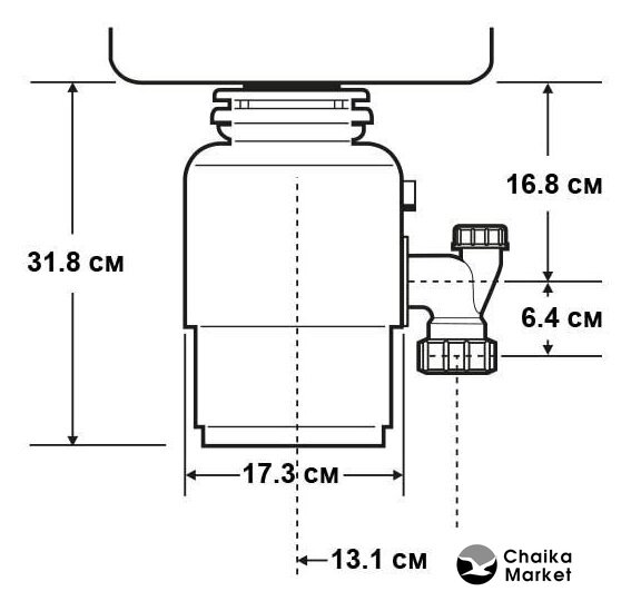 электрический, синхронный двигатель, 1 л.с., 750 Вт, 3600 об/мин, управление: дистанционная кнопка, 5-ступенчатое измельчение, с реверсом, с защитой от перегрузок, 62 дБ