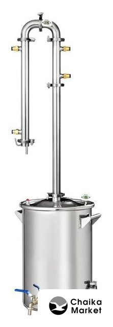бытовой дистиллятор, нержавеющая сталь, объем перегонного куба 40 л, толщина стенок 1.5 мм, толщина дна 2 мм
