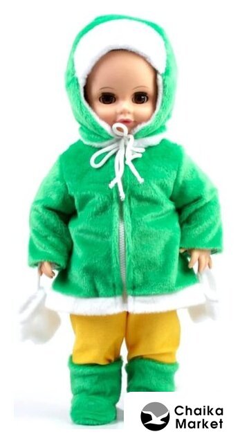 | Комплектация | в комплект одежды куклы входит: Куртка из ворсового трикотажа с длинными рукавами, капюшоном и застёжкой спереди на 3 пуговицы. Подклад, манжеты рукавов и отделка капюшона из флиса; вязаные шапка и шарф. Обувь - сапожки., 2 дополнительных комплекта одежды. |
