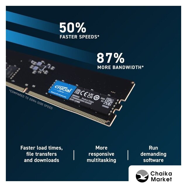 64 ГБ, 2 модуля DDR5 DIMM по 32 ГБ, частота 5600 МГц, CL 46T, тайминги 46-45-45, напряжение 1.1 В