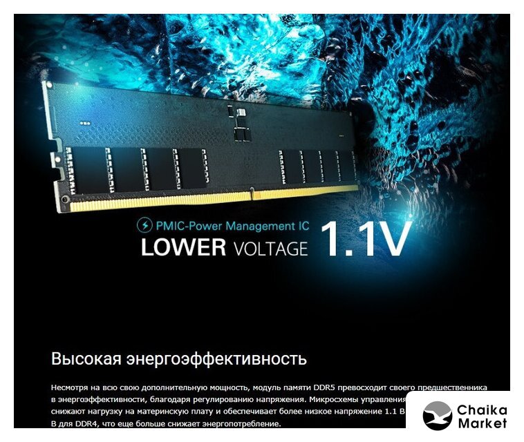 16 ГБ, 1 модуль DDR5 DIMM, частота 4800 МГц, CL 40T, напряжение 1.1 В