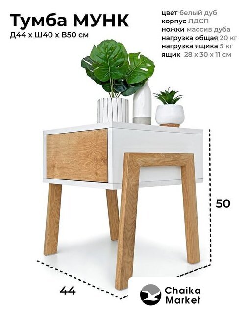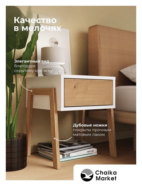 для спальни, каркас ЛДСП+МДФ, фасад МДФ, 1 ящик, 1 полка, 50x42x50 см