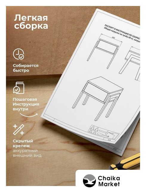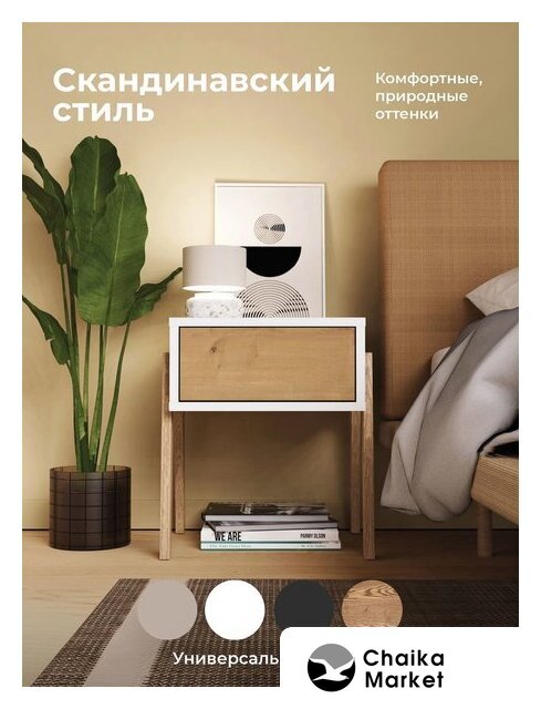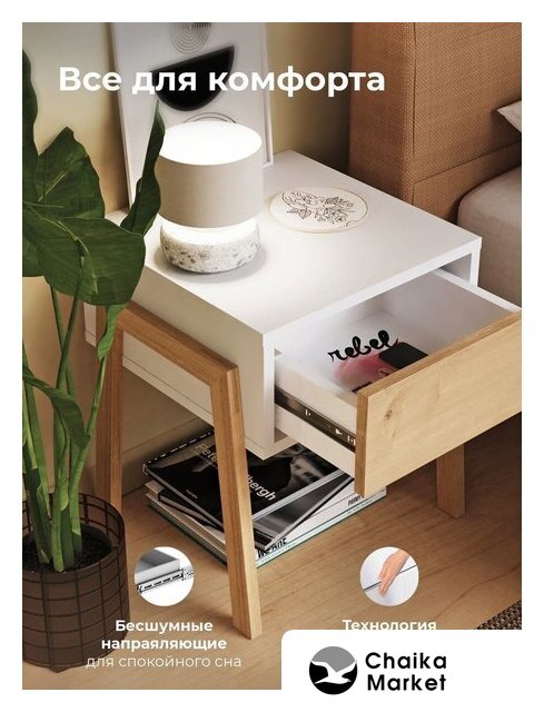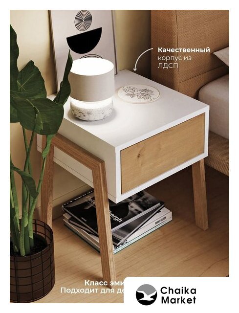 для спальни, каркас ЛДСП, фасад ЛДСП, 1 ящик, 1 полка, 50x40x54 см