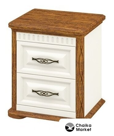 для спальни, каркас ЛДСП, фасад стекло+МДФ, 2 ящика, 45x44.6x34.7 см