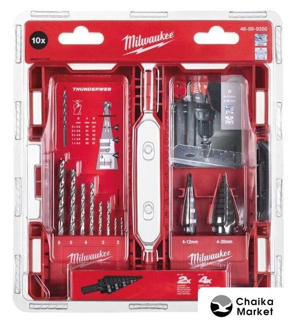 | Комплектация | - Ступенчатое сверло 4-12 мм - 1 шт.- Ступенчатое сверло 4-20 мм - 1 шт.- Сверло THUNDERWEB по металлу 2 мм - 2 шт.- Сверло THUNDERWEB по металлу 3 мм - 2 шт.- Сверло THUNDERWEB по металлу 4 мм - 2 шт.- Сверло THUNDERWEB по металлу 5 мм - 1 шт.- Сверло THUNDERWEB по металлу 6 мм - 1 шт. |