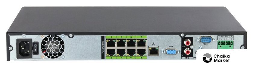 сетевой видеорегистратор, 8 IP, 2 HDD, запись 3840x2160, сжатие MJPEG/H.264/H.264+/H.265/H.265+