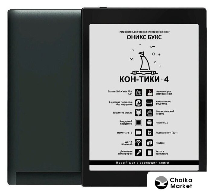 экран 7.8" E-Ink Carta 1200, 1404 x 1872, сенсорный, с подсветкой, память 32 Гб, Wi-Fi