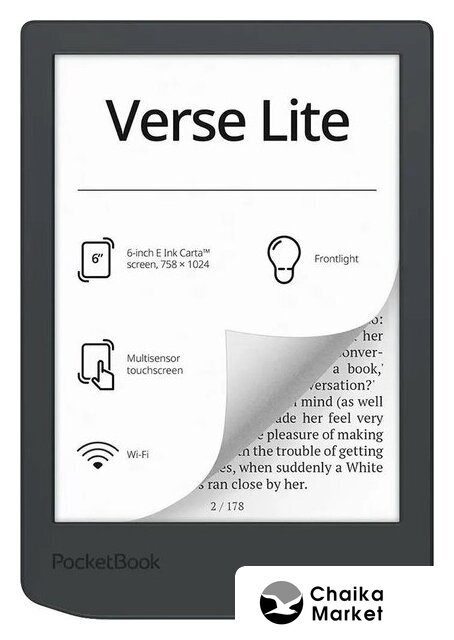 экран 6" E-Ink Carta, 768 x 1024, сенсорный, с подсветкой, память 8 Гб, карты памяти, Wi-Fi
