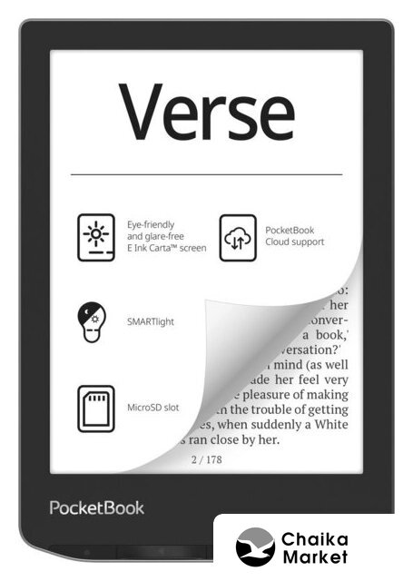 экран 6" E-Ink Carta, 768 x 1024, сенсорный, с подсветкой, память 8 Гб, Wi-Fi