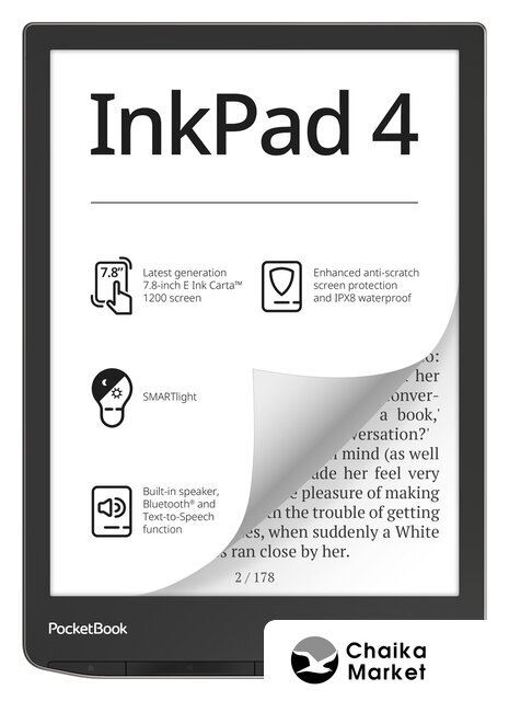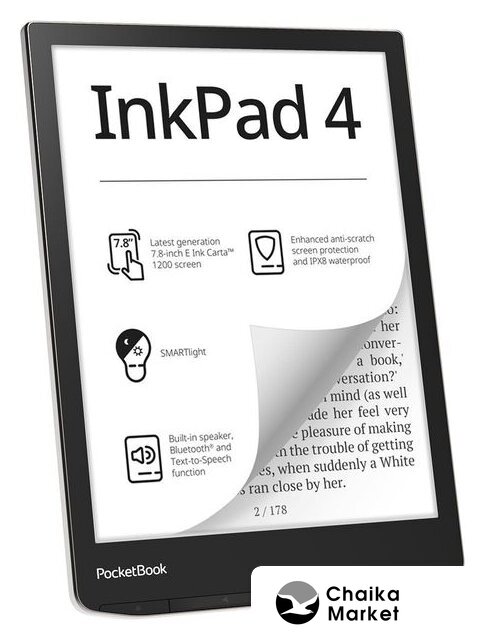 экран 7" E-Ink Carta 1200, 1264 x 1680, сенсорный, с подсветкой, память 32 Гб, карты памяти, Wi-Fi