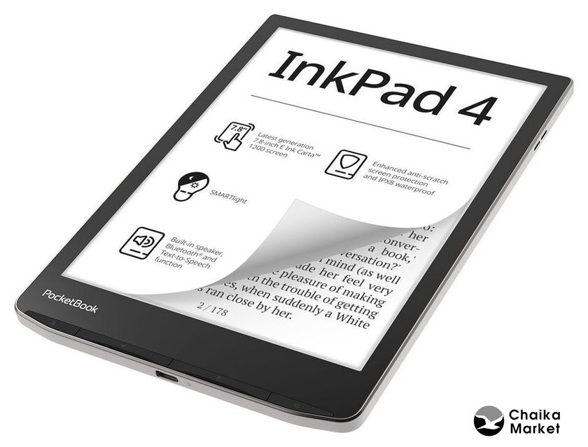 экран 7" E-Ink Carta Plus, 1264 x 1680, сенсорный, с подсветкой, память 64 Гб, карты памяти, Wi-Fi