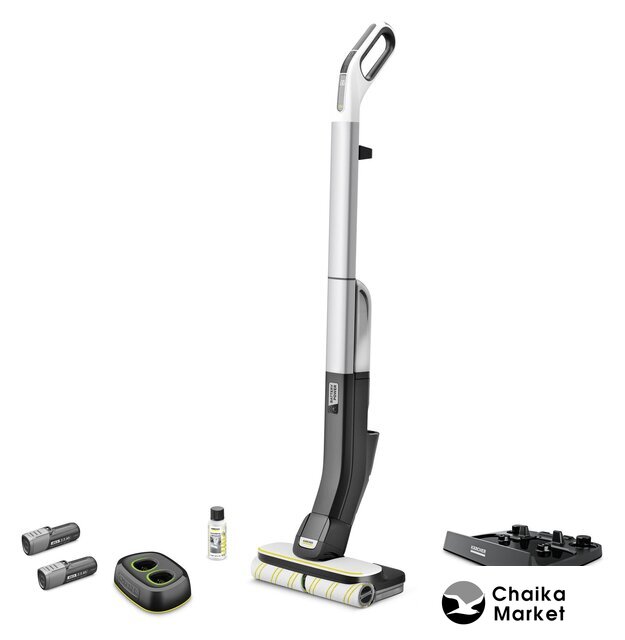 Комплектация | Аккумуляторная батарея Battery Power емкостью 2,5 Ач (2 шт.)Быстрое зарядное устройство 4 В Battery Power (1 шт.)Средство для мытья полов универсальное RM 536, 30 млСтанция очистки и парковкиЩетка для уборки |