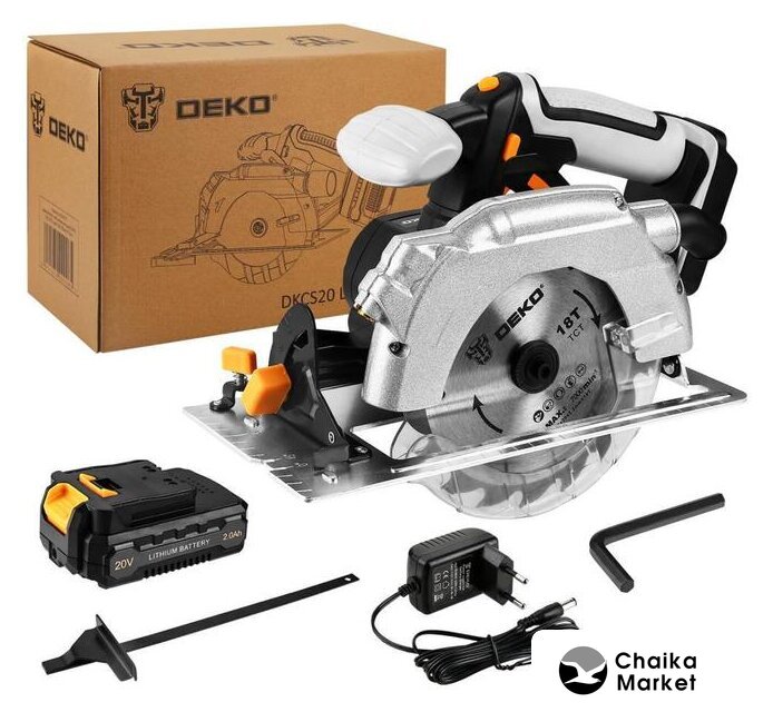 Комплектация | - Пила циркулярная;- Аккумулятор - 1 шт;- Параллельный упор;- Зарядное устройство;- Шестигранный ключ;- Инструкция;- Коробка. |