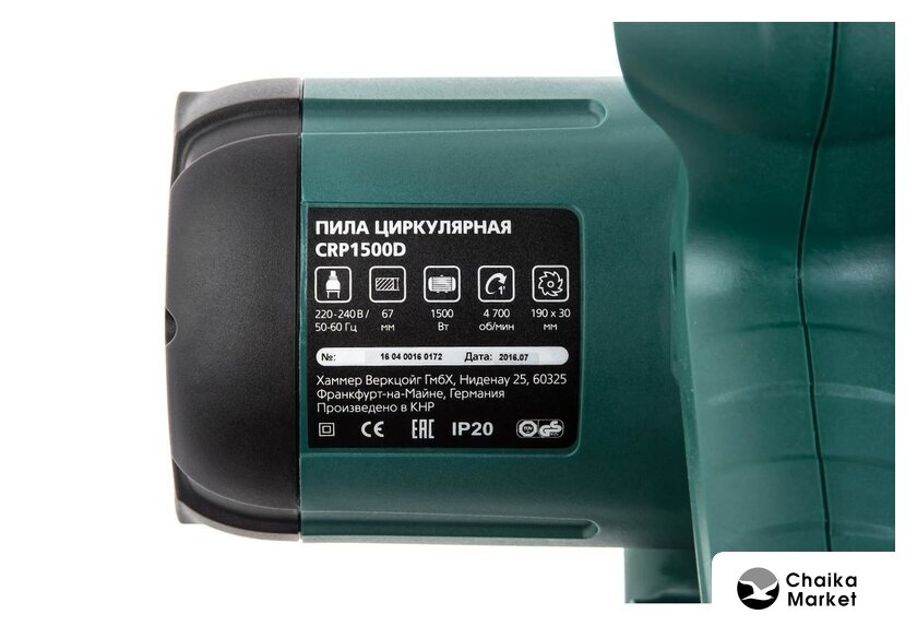дисковая, питание: сеть, 1200 Вт, диаметр диска: 190 мм, 5500 об/мин