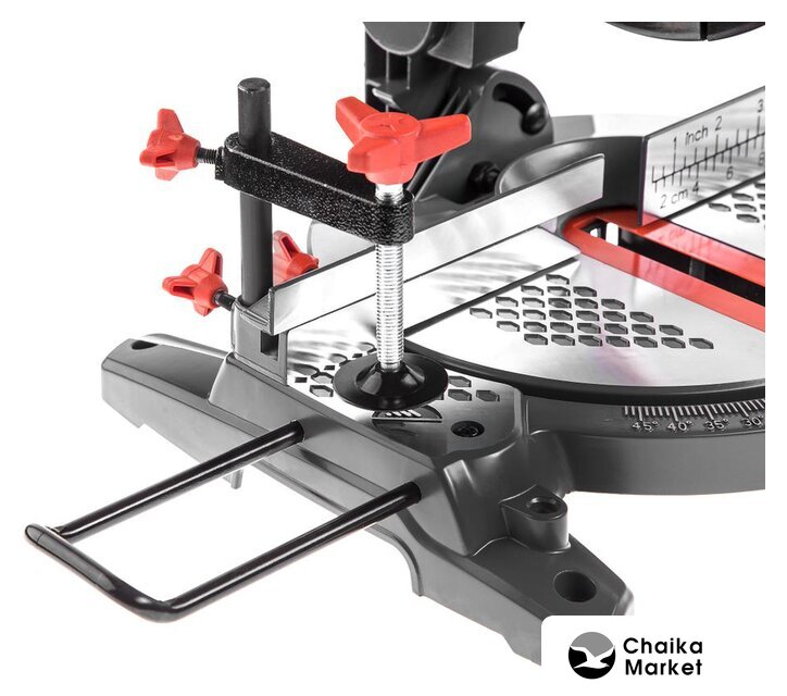 Комплектация | - Пила торцовочная- Удлинитель поддержки заготовки - 2 шт.- Струбцина прижима заготовки - 1 шт.- Диск пильный - 1 шт.- Ключ диска - 1 шт.- Ключ шестигранный - 3 шт.- Параллельная направляющая - 1 шт.- Инструкция- Упаковка- Толкатель - 1шт.- Дополнительный упор - 1шт. |