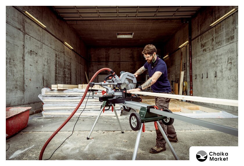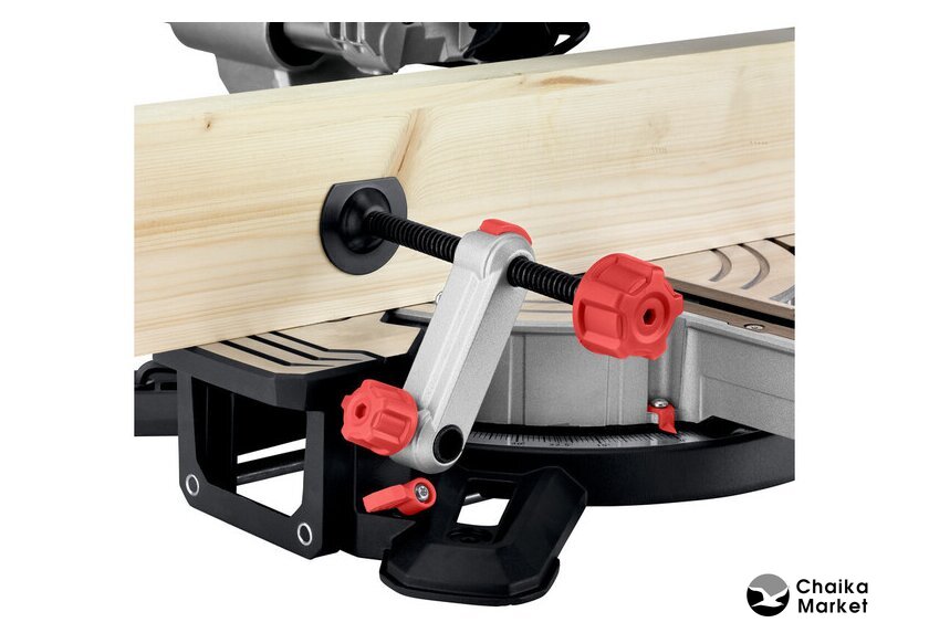 Комплектация | - Пильное полотно «Precision cut wood — classic» 305x30 Z56- 2 встроенных расширения стола- Торцовочный упор- Зажим для материала- Инструмент для смены пильного диска- Мешок для сбора опилок |