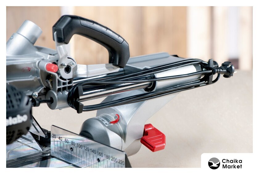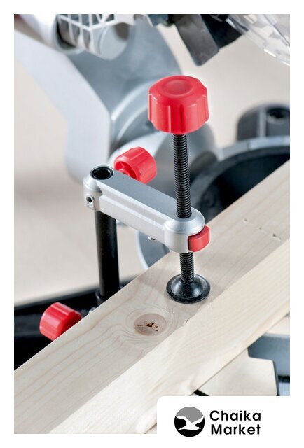 | Комплектация | Твердосплавное пильное полотно (60 зубьев)2 встроенных расширения столаТорцовочный упорЗажим для материалаИнструмент для смены пильного дискаНамотка кабеляМешок для сбора опилок |